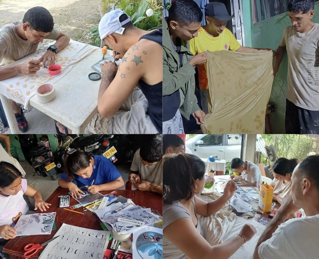 En la Vereda Miraflor, en Cauca, Colombia, un grupo de jóvenes y mujeres que antes cultivaban la mata de coca como forma de subsistencia—ya fuera para usos cotidianos como medicina alternativa o para su venta sin involucrarse en el procesamiento posterior de la hoja— hoy busca una nueva manera de transformarla a través del arte. En lugar de destinarla únicamente a la sanación o a la comercialización, están experimentando con la obtención de tinturas y pigmentos vegetales para teñir camisetas, hacer estampados y crear diseños que ofrezcan una visión distinta de la planta, reconociendo sus múltiples beneficios y propiedades.